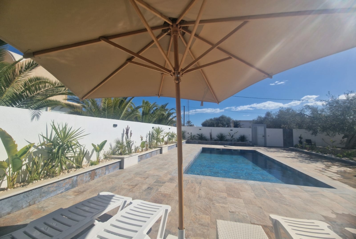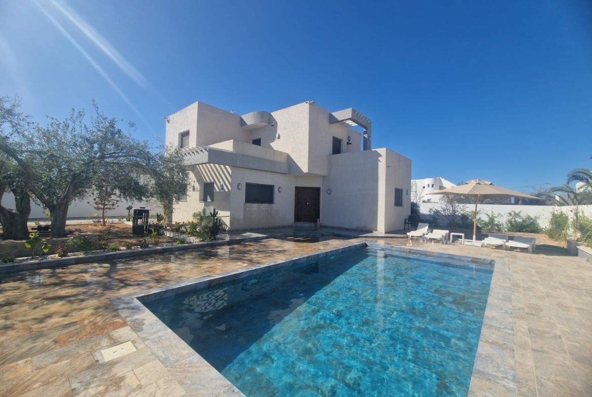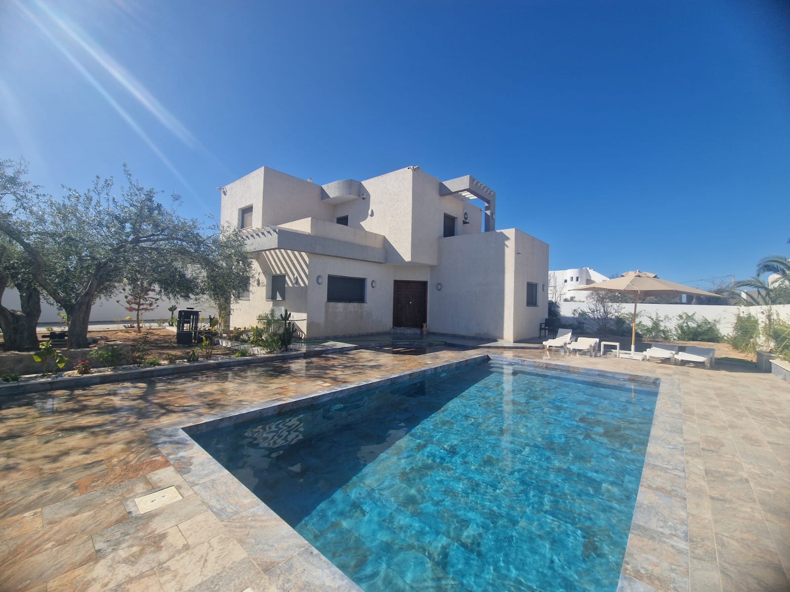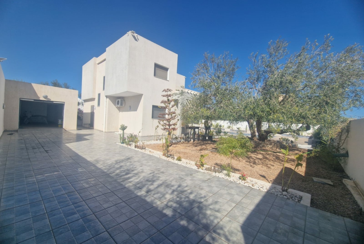 À louer à l’année, belle villa située à Arkou, dans un quartier calme et recherché de Djerba, offrant un cadre de vie agréable et paisible.