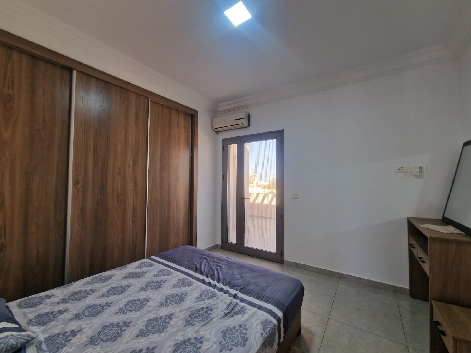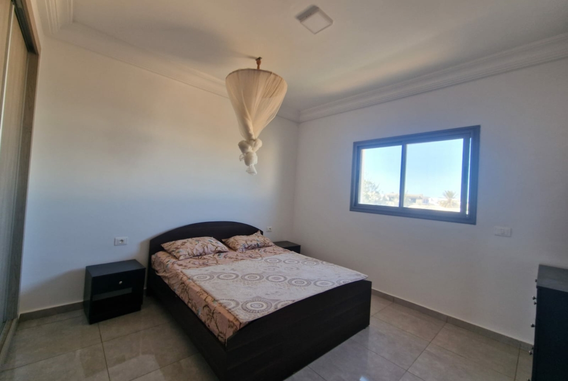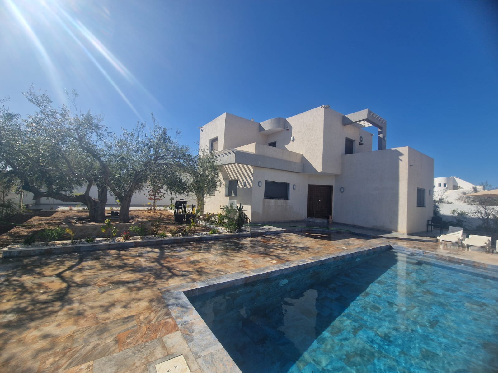 À louer à l’année, belle villa située à Arkou, dans un quartier calme et recherché de Djerba, offrant un cadre de vie agréable et paisible.