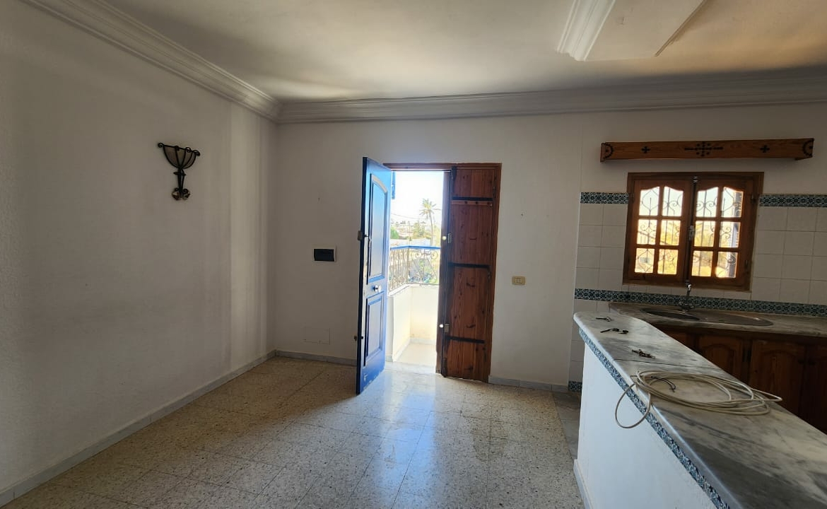 Découvrez cet appartement S2 non meublé à louer à Midoun, Djerba, L’appartement se compose de deux chambres lumineuses, d’un salon spacieux, d’une cuisine indépendante et d’une salle de bain.