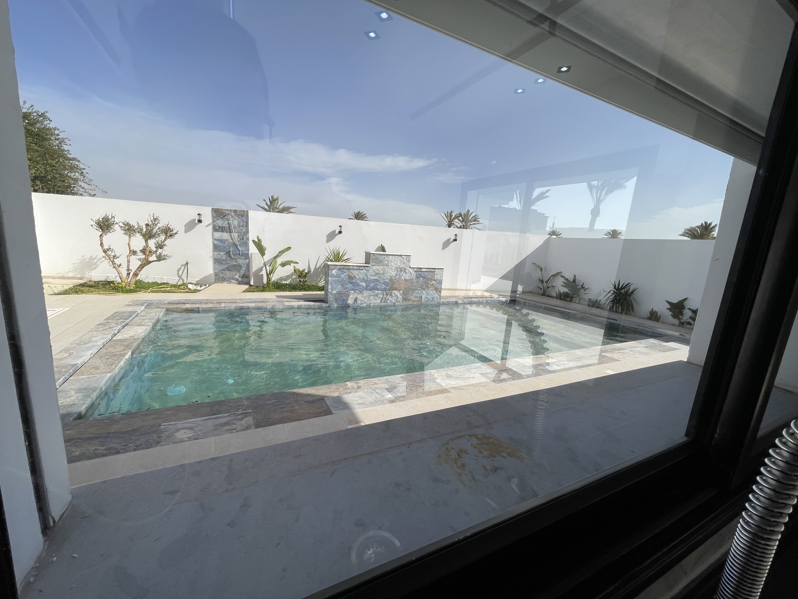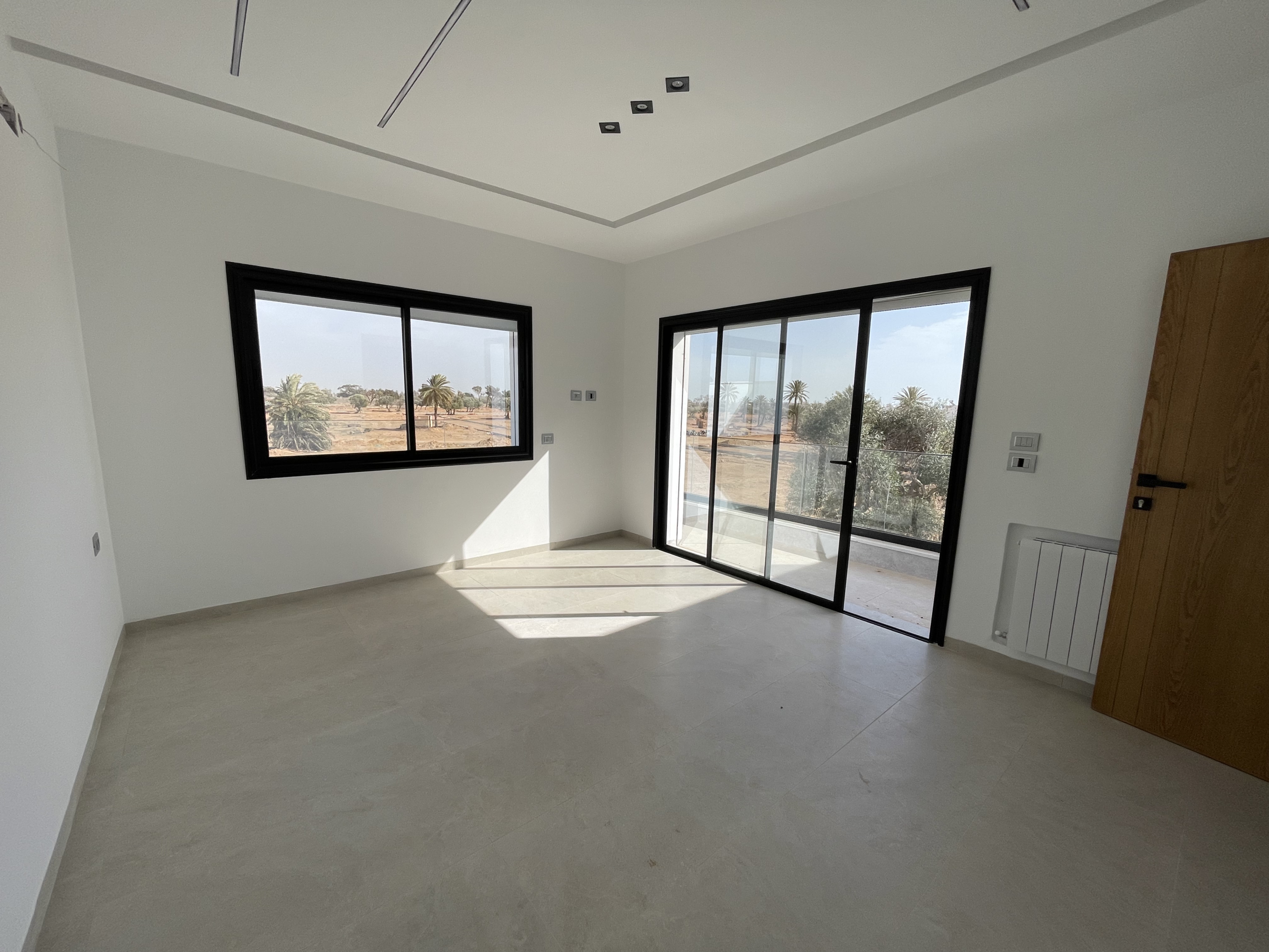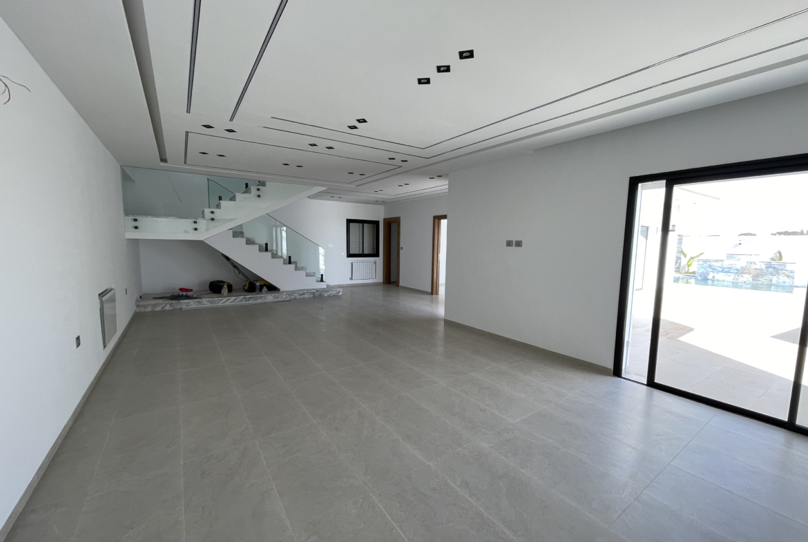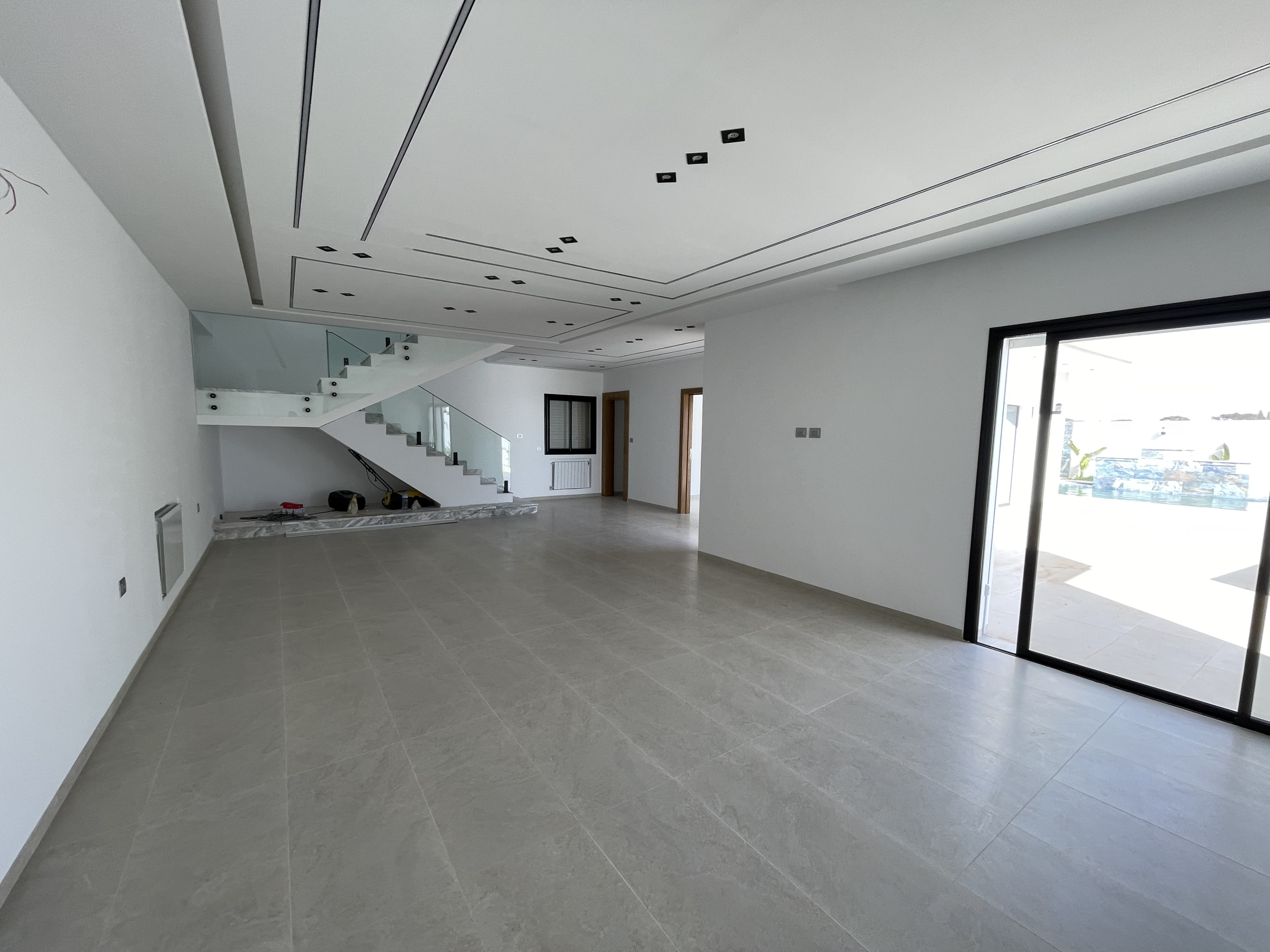 À l’intérieur, de volumes généreux : vaste séjour ouvert, finitions modernes, plafonds décoratifs avec spots, et circulation fluide vers l’espace piscine. À l’étage, une grande terrasse/balcon idéale pour profiter du soleil et de la vue.