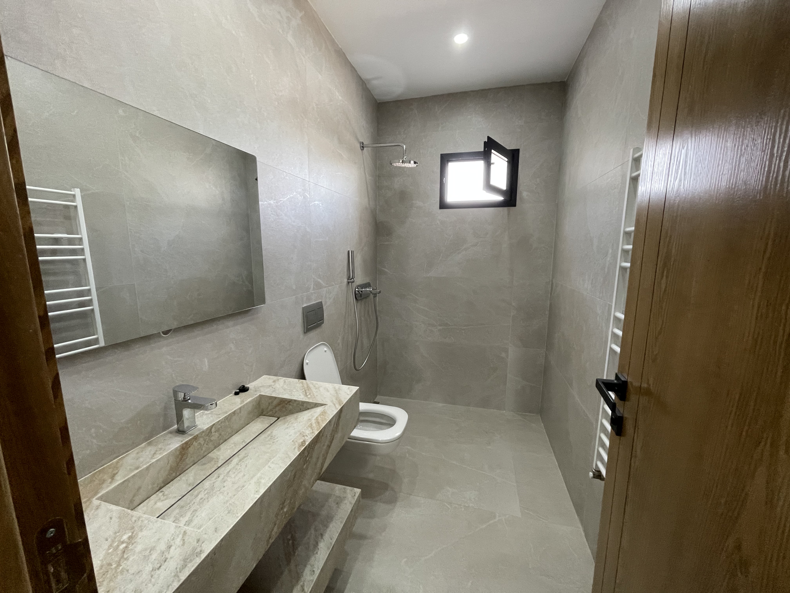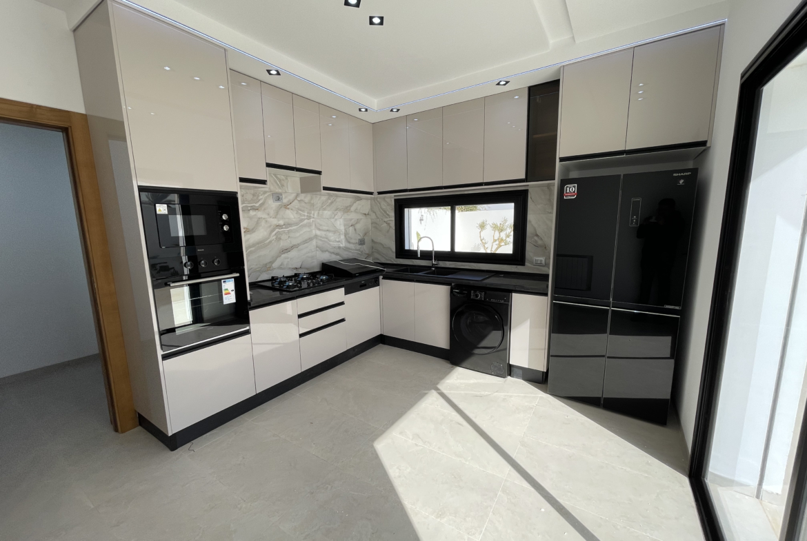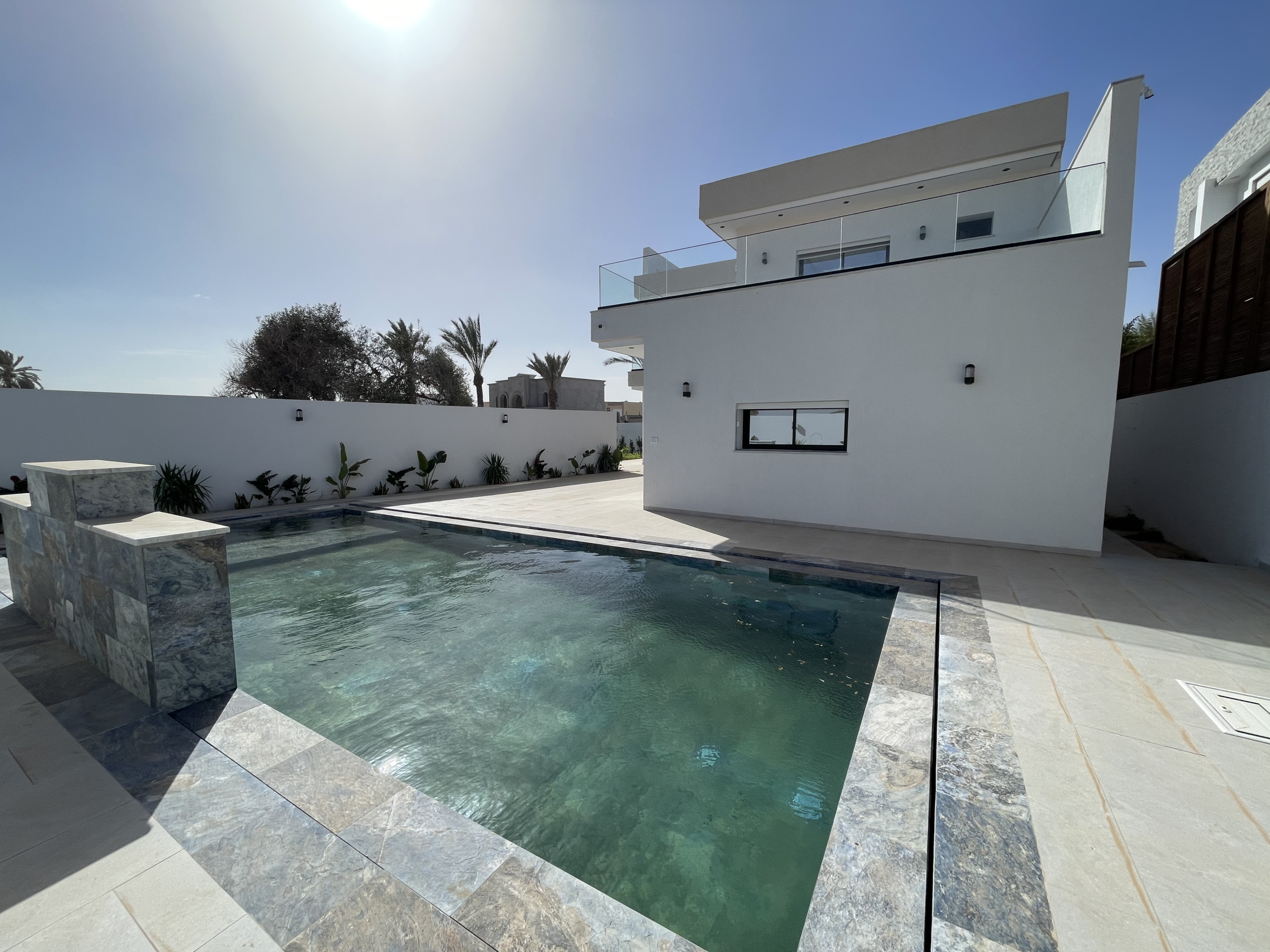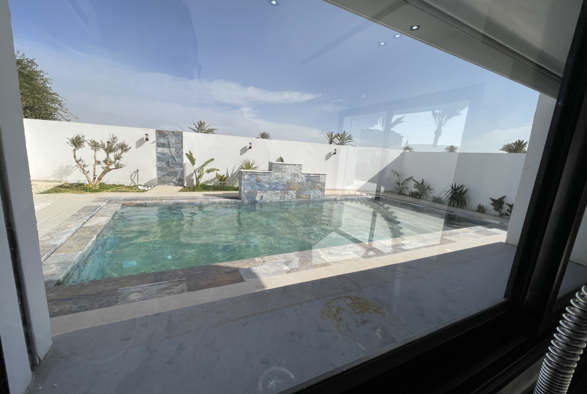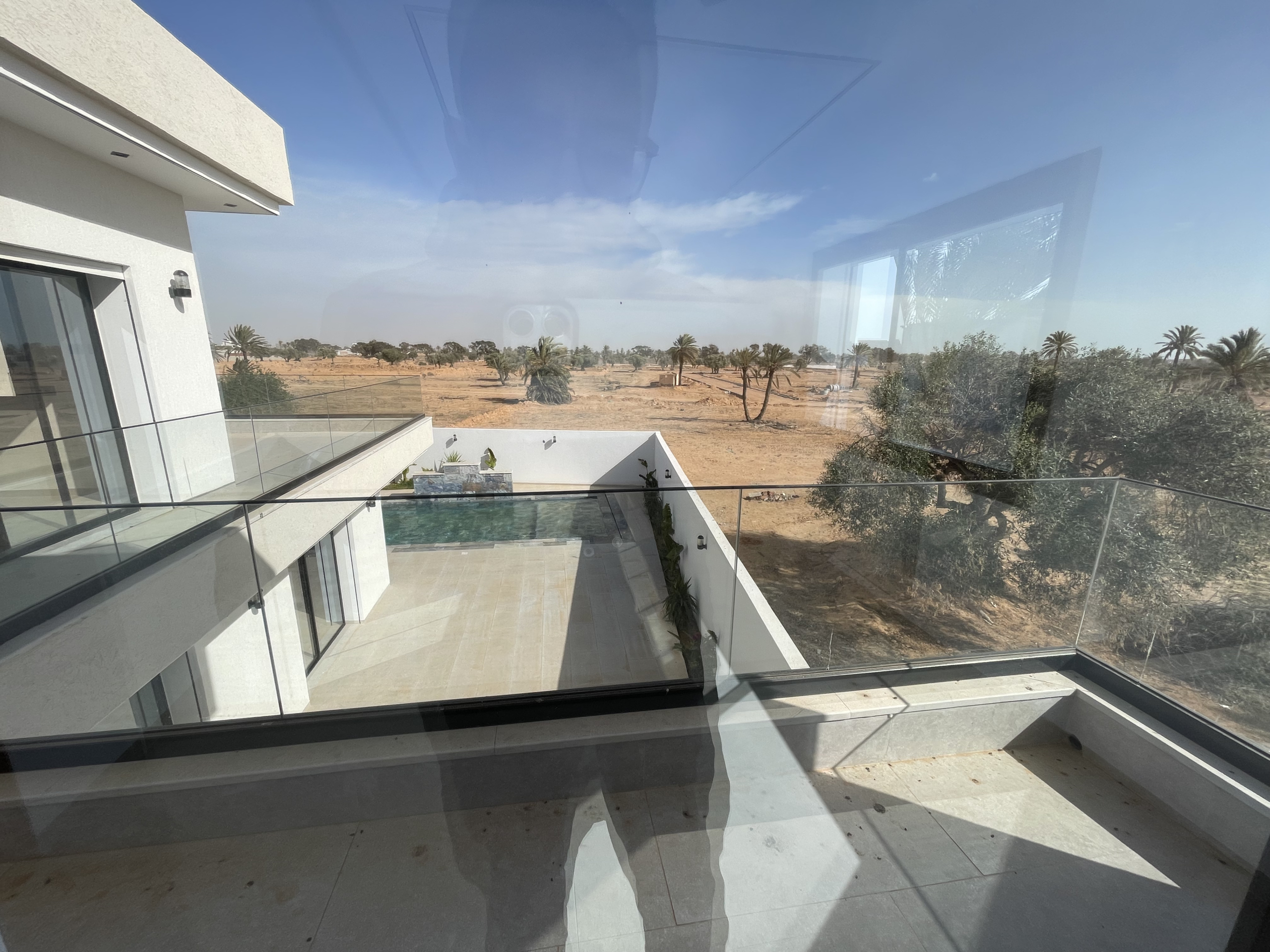 À l’intérieur, de volumes généreux : vaste séjour ouvert, finitions modernes, plafonds décoratifs avec spots, et circulation fluide vers l’espace piscine. À l’étage, une grande terrasse/balcon idéale pour profiter du soleil et de la vue.